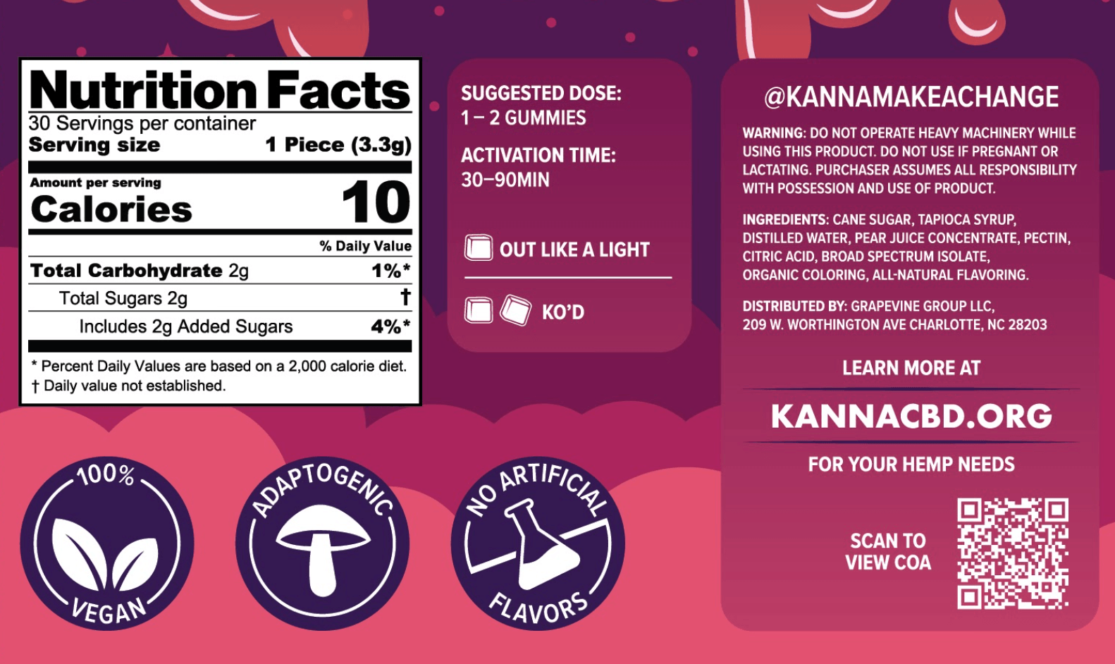 These gummies contain broad spectrum CBD and are THC-free.