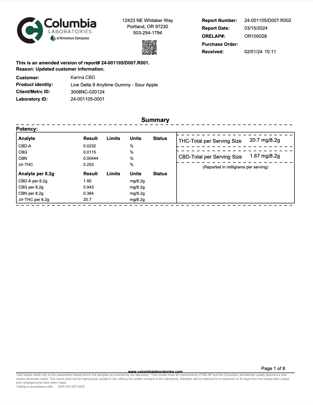 KANNA "Pucker Punch" Sour Apple Live Resin Hybrid Gummies - D9/CBD